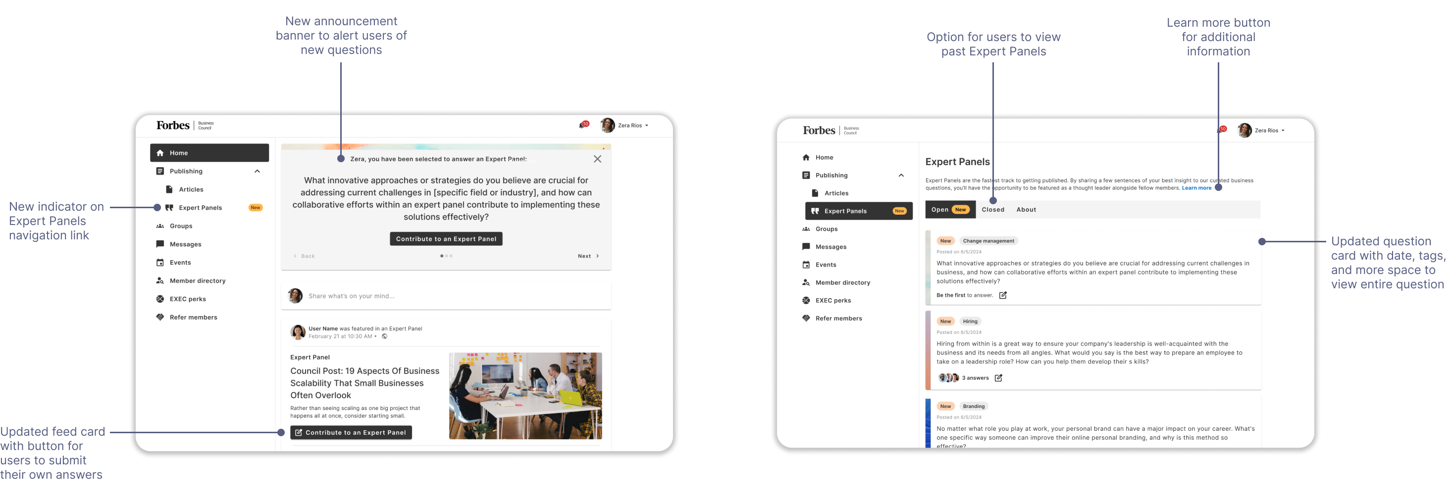 Now, what are Expert Panels? One of the main draws of our product, Expert Panels, or EPs for short, are collaborative articles: a question will be posted in our platform that users can submit answers to. From there, they have a chance to be selected if an editor decides that their answer is a good fit for the question and article topic. It’s an easy and relatively low effort way for users to get published with our clients such as Forbes, Rolling Stone, or Fast Company.